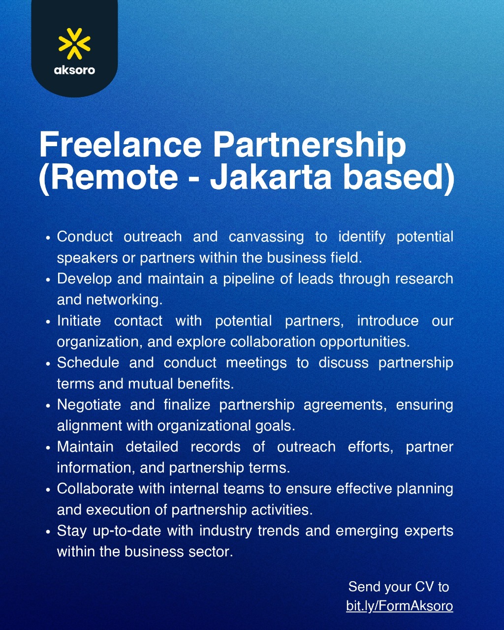 TANGGAL POSTING 28 October 2025 DEADLINE - NAMA PERUSAHAAN Aksoro Group POSISI Freelance Partnership (Remote - Jakarta based) KONTAK +6282221042678 (HR)