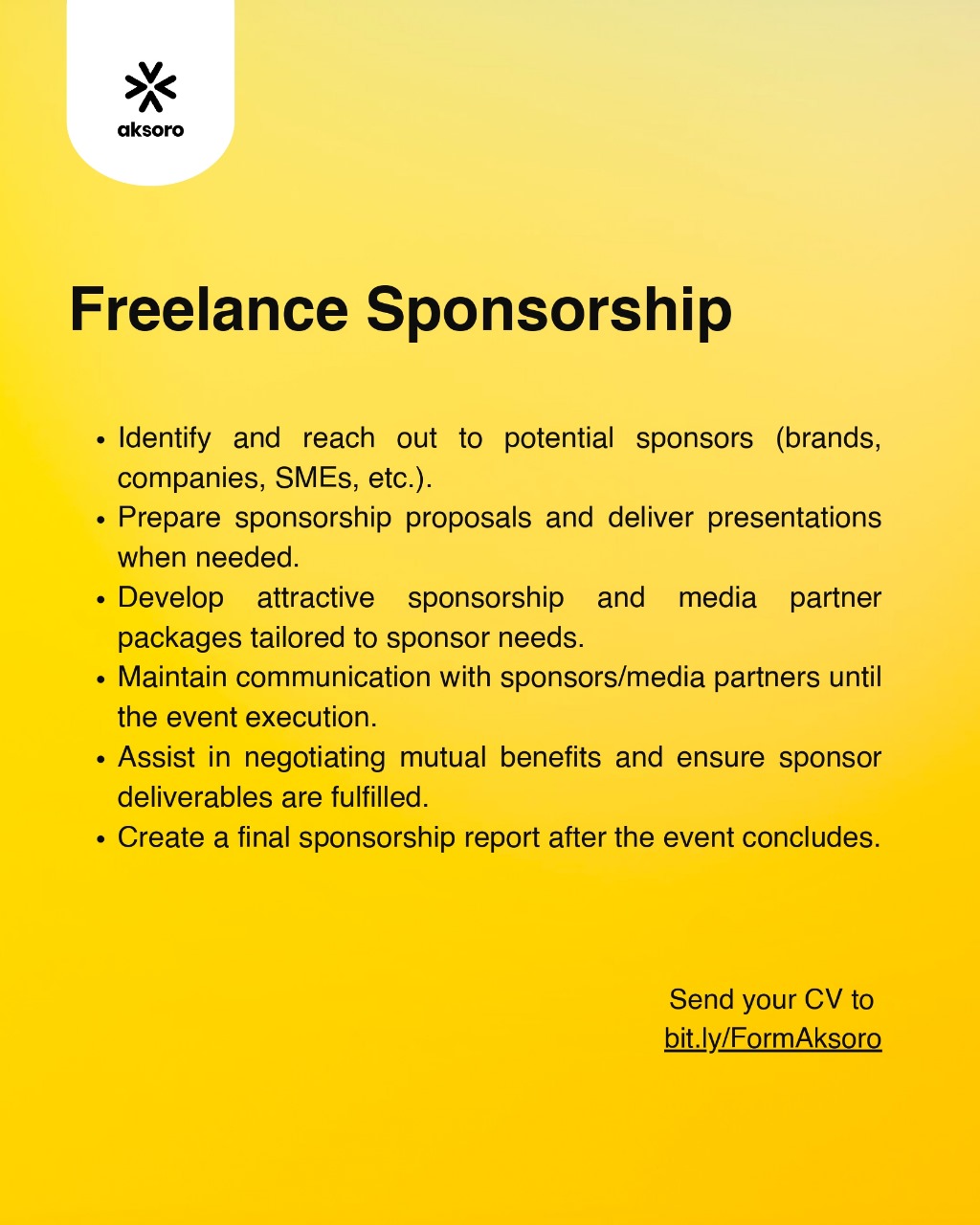 TANGGAL POSTING 28 October 2025 DEADLINE - NAMA PERUSAHAAN Aksoro Group POSISI Freelance Sponsorship KONTAK +6282221042678 (HR)