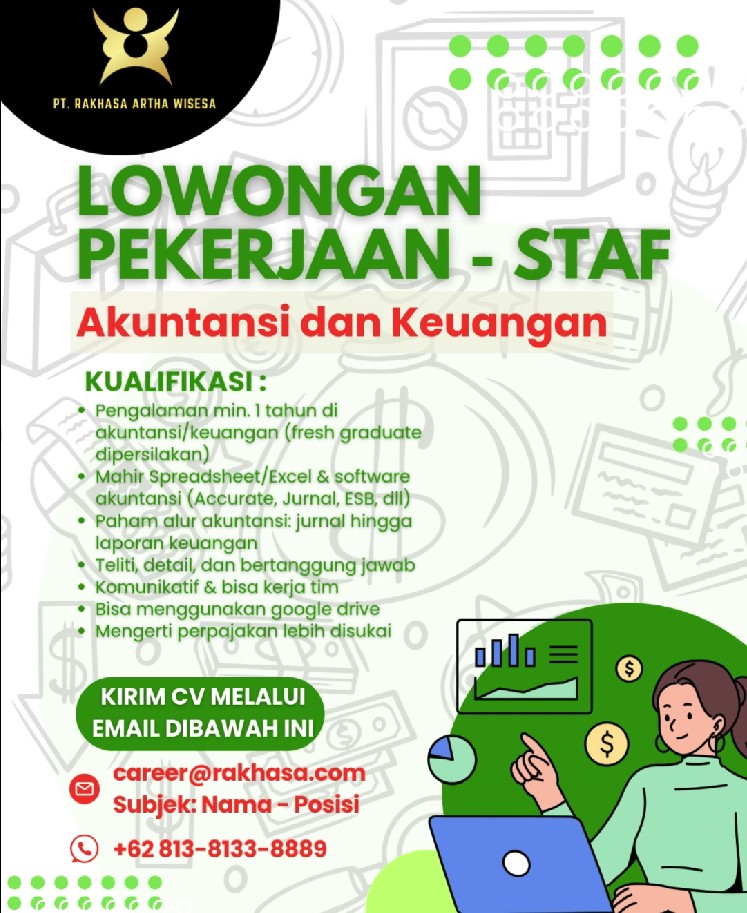 TANGGAL POSTING 10 October 2025 DEADLINE - NAMA PERUSAHAAN PT. RAKHASA ARTHA WISESA POSISI Staf Akuntansi dan Keuangan KONTAK +62 813-8133-8889